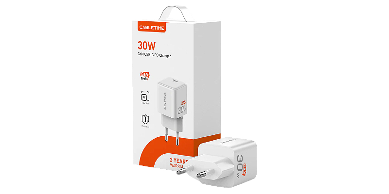 מטען 30W USB-C GaN, מעוצב עם טכנולוגיית GaN חדשנית, קטן ב-40% מדגמים סטנדרטיים,