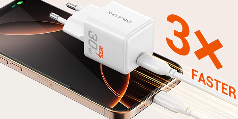מטען ה-USB-C של 30W מספק כוח מהיר בזק לכל המכשירים שלך, מסמארטפונים ועד טאבלטים.
