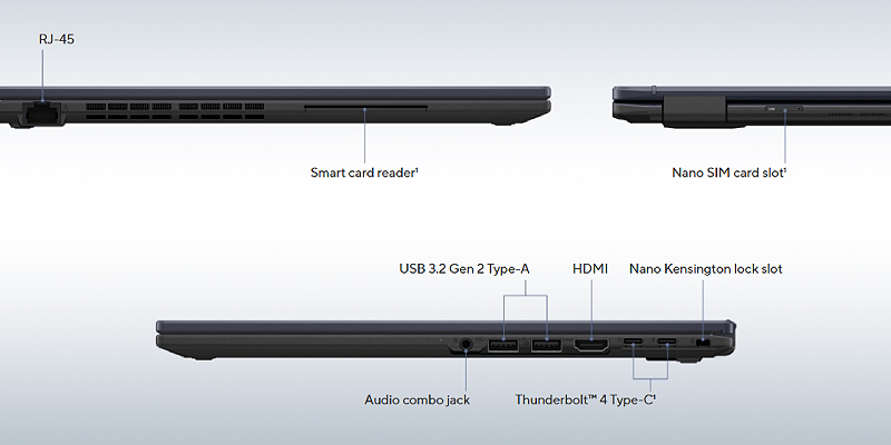 ExpertBook B3 מציע מערך רחב של יציאות להעברת נתונים ולחיבור התקנים חיצוניים בקלות.