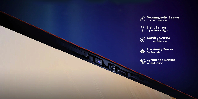 כולל ג'יירוסקופ לשליטה מדויקת, חיישן מגנטי לזיהוי כיוון מדויק, וחיישן תאוצה לסיבוב חכם של המסך.
