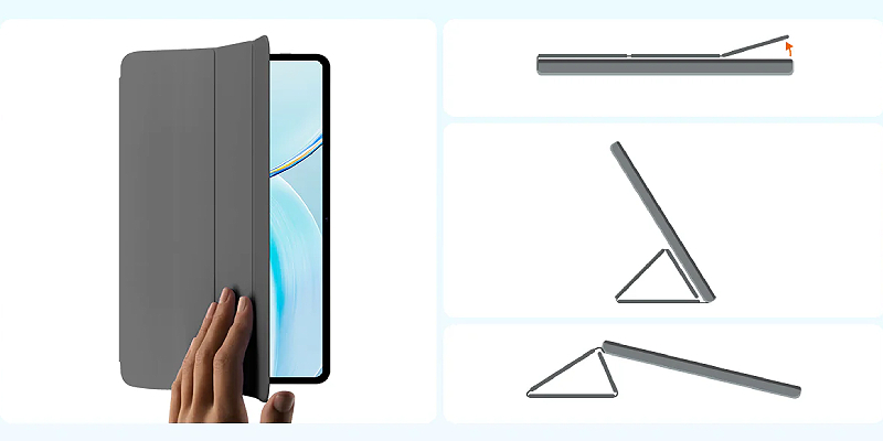 בזכות התאימות לחיישנים החכמים המובנים בטאבלט, הכיסוי מעיר או מכבה את המסך באופן אוטומטי בעת פתיחה או סגירה.