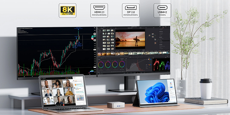 יציאות USB4, HDMI 2.1 ו-DP 2.0 מאפשרות חיבור עד 3 מסכי 4K בו-זמנית לשיפור יעילות העבודה.
