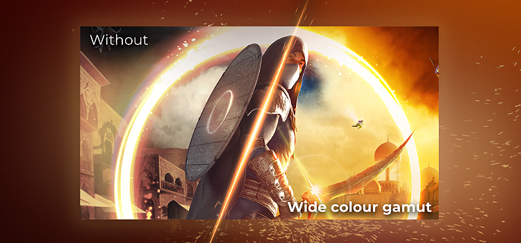 הודות לטכנולוגיית Wide Color Gamut, המסך מציג הרבה יותר צבעים ממסכים רגילים, וזה בזכות פתרון חומרתי ייעודי – לא רק תוכנה.