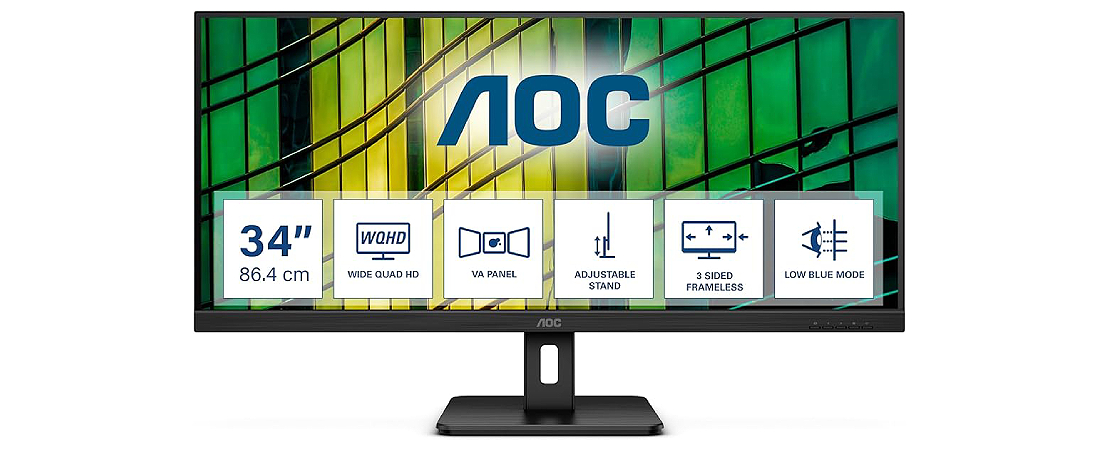 ה-AOC U34E2M מצויד בפאנל VA בגודל 34 אינץ' ברזולוציית Ultrawide QHD 21:9