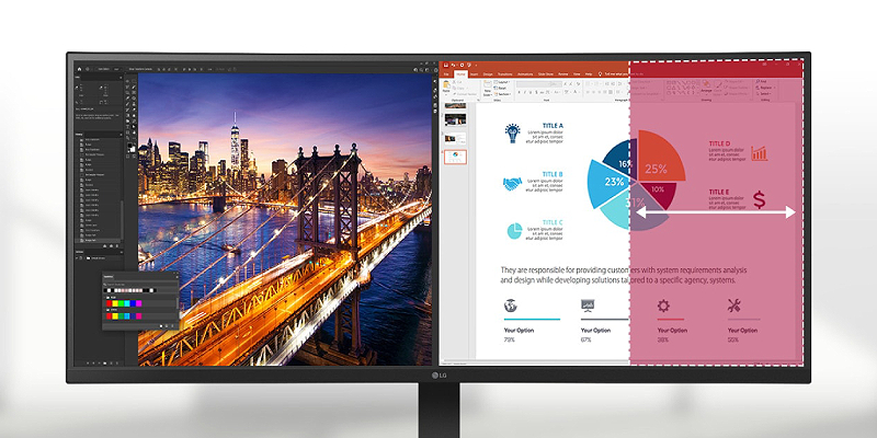 ניתן להציג מספר תוכניות בו-זמנית או לצפות בשורות נתונים ארוכות בגיליון אלקטרוני ללא גלילה אופקית.