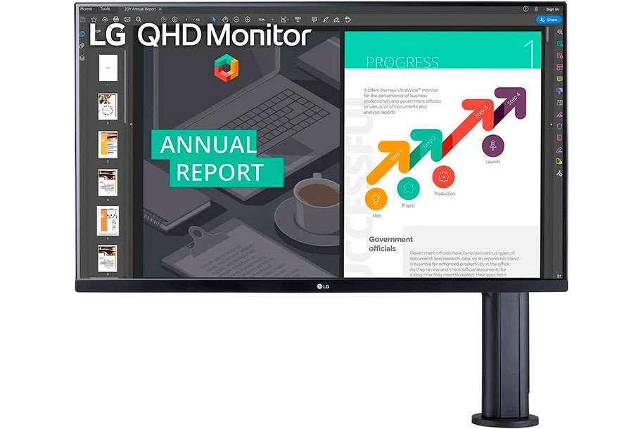 An immersive experience for work, watch and play. The LG QHD Monitor expands your view for elevated productivity, all in an easy set-up. The rich, vivid IPS display delivers color at wide angles, along with impressive refresh rates and response times for gaming and fast action.