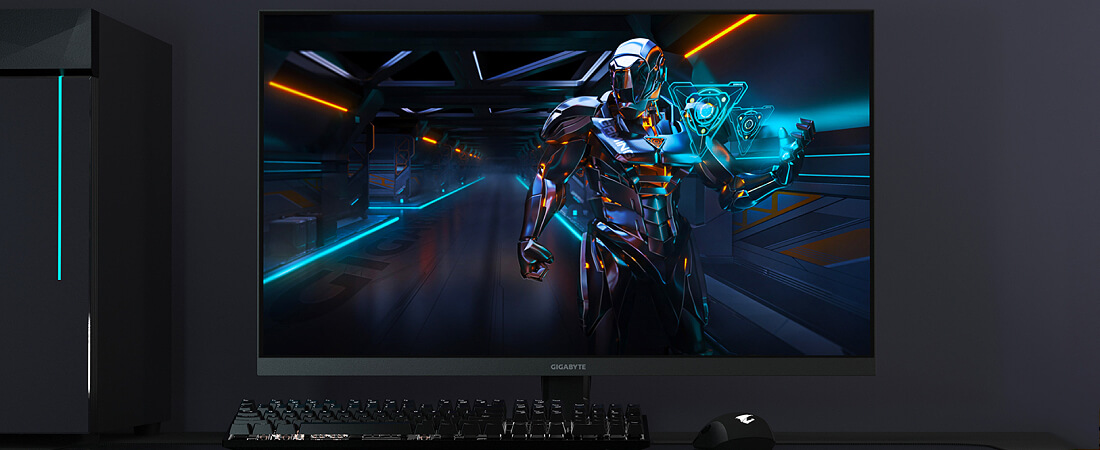 מסך הגיימינג של GIGABYTE כולל מעמד שתוכנן להציע מגוון רחב של התאמות הטיה.