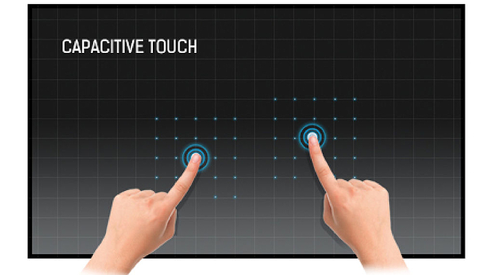המגע מזוהה מכיוון שהמאפיינים החשמליים של רשת החיישן משתנים כאשר אצבע אנושית מונחת על הזכוכית.