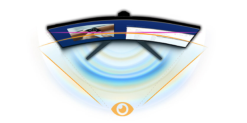 הוא מאפשר זווית צפייה טבעית ורחבה יותר לעומת מסכים שטוחים המונחים זה לצד זה.