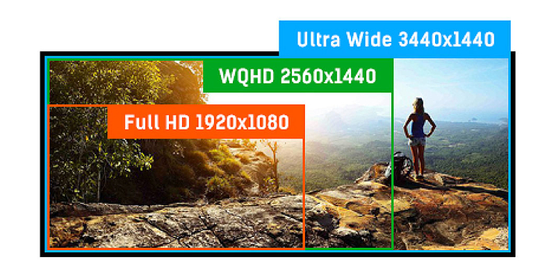 רזולוציית UWQHD (Ultra Wide QHD) מספקת שטח צפייה רחב במיוחד ביחס 21:9.
