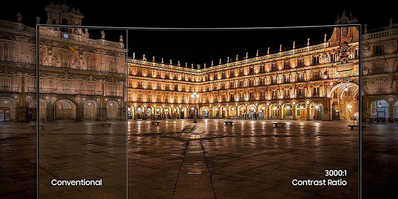 טכנולוגיית הפאנל החדשנית של Samsung מסוג VA מספקת יחס ניגודיות יוצא דופן של 3000:1, עם שחורים עמוקים ולבנים בוהקים.