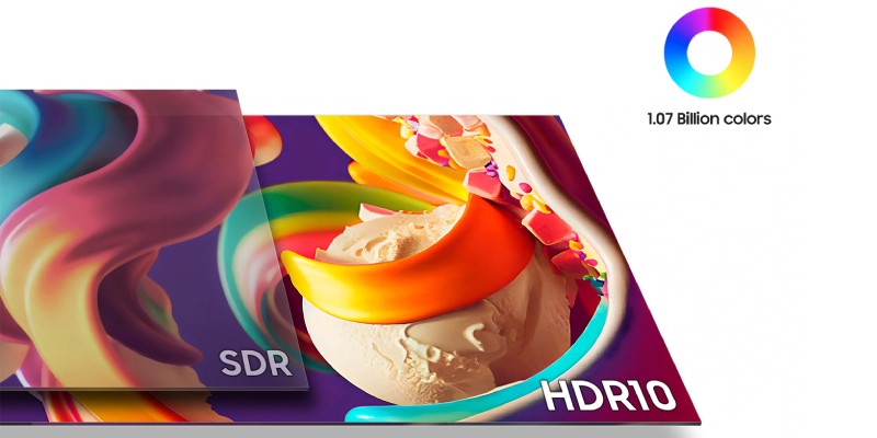 HDR10 מציע אינספור גוונים וייצוג צבעים מציאותי, עם כהים עמוקים ובהירים מרהיבים.