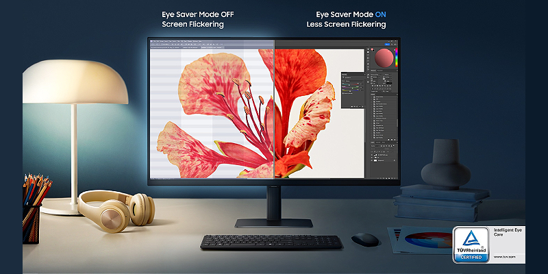אישור TUV לטכנולוגיית הגנת עיניים חכמה, מפחיתה ריצוד מסך ומגנה מפני אור כחול מזיק עם מצב חסכון לעיניים.