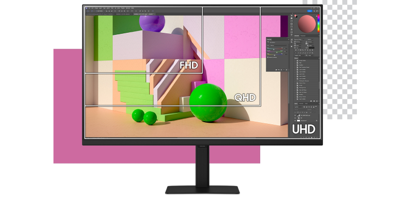 רזולוציית UHD (3840x2160) חושפת רמות גבוהות יותר של פירוט עם צפיפות פיקסלים גבוהה יותר.