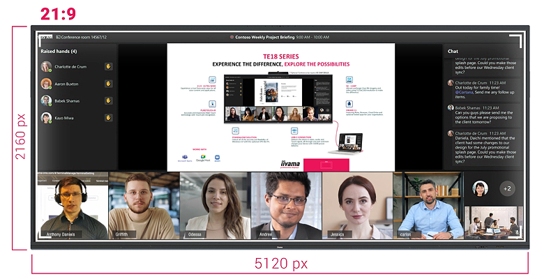 פורמט ה־21:9 הרחב גם מהווה התאמה מושלמת ל־Microsoft Teams Front Row ומספק חוויית משתמש יוצאת דופן ושוויון בין משתתפים בחדרי ישיבות.