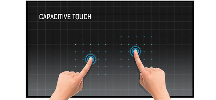 המגע מזוהה מכיוון שהמאפיינים החשמליים של רשת החיישנים משתנים כאשר אצבע אנושית מונחת על הזכוכית.