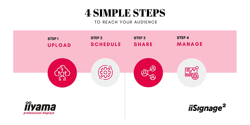 המערכת לניהול תוכן iiSignage² נותנת לך שליטה מלאה על ההודעות והפרסום שלך, מרחוק ובאופן מאובטח.
