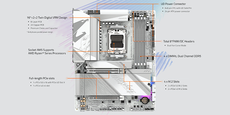 PCIe UD Slot X : PCIe 5.0 x16 slot with 10X strength for graphics card