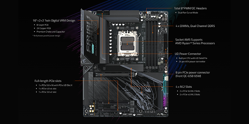 PCIe UD Slot X : PCIe 5.0 x16 slot with 10X strength for graphics card