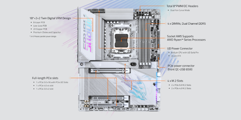 PCIe UD Slot X : PCIe 5.0 x16 slot with 10X strength for graphics card