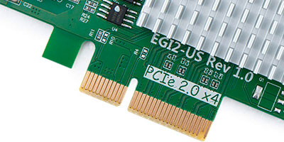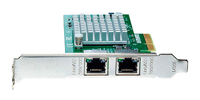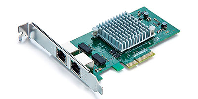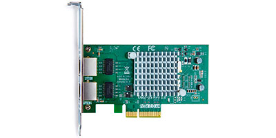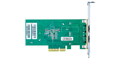 | Dual copper RJ45 ports let you connect to Category-5 and up to 100m for meeting the demands of data center environments. PCI Express v2.0(5.0GT/s) x4 lane. | ![]() |