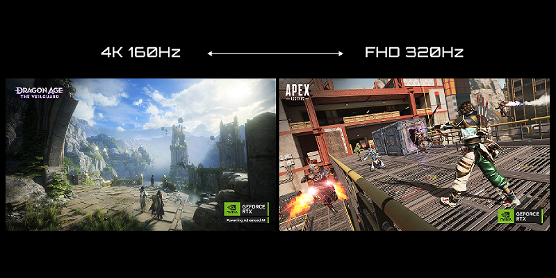 בחרו בין תצוגת UHD חדה במיוחד בקצב 160Hz לבין תצוגת FHD מהירה במיוחד בקצב 320Hz – לחוויית גיימינג מושלמת גם במשחקי FPS תחרותיים.