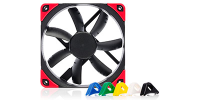 | Having received more than 100 awards and recommendations from international hardware websites and magazines, the NF-S12A is one of Noctua’s most renowned and popular 120mm fans. Its outstanding airflow efficiency and superb acoustics make it ideal for case cooling and other low-impedance applications. The chromax.black.swap edition combines the NF-S12A’s signature quiet cooling performance with an attractive all-black design and a bundle of swappable red, white, blue, green, yellow and black anti-vibration pads that allow the colour-customisation of the fan to match individual build colour schemes. |  |