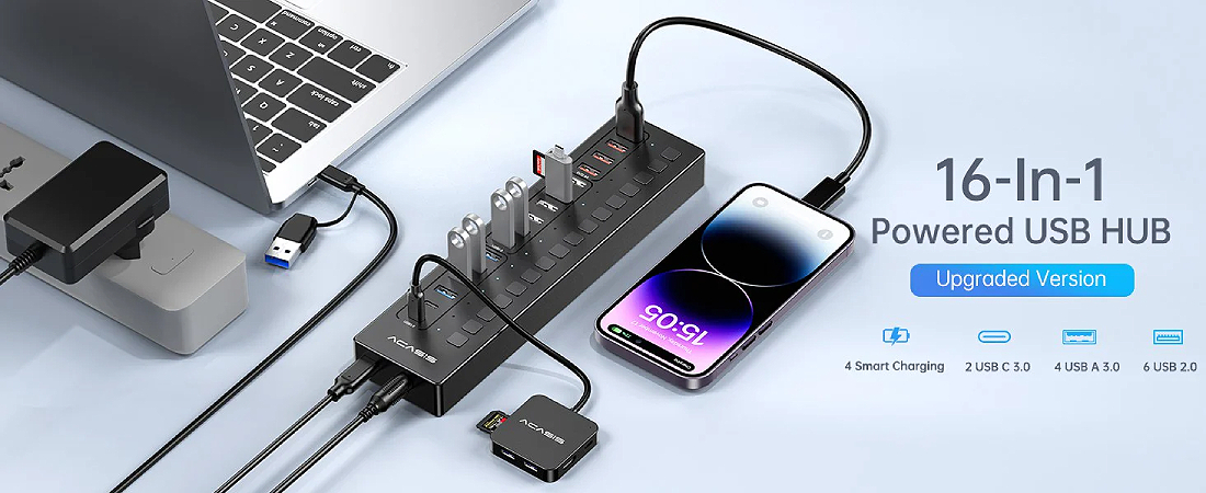 הרחב את קישוריות המחשב הנייד שלך עם מפצל 16 החיבורים USB-C של ACASIS!