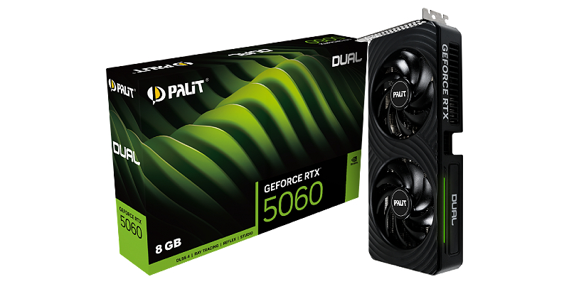 ה-Palit GeForce RTX™ 5060 Dual מספק יעילות קירור קלאסית בעיצוב מודרני ואלגנטי.