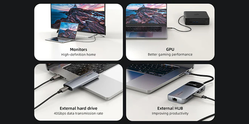 מה שמגדיל את היעילות עם מגוון רחב של התקני USB-C, כולל תחנות עגינה, כוננים קשיחים, מסכים ו-GPUs.