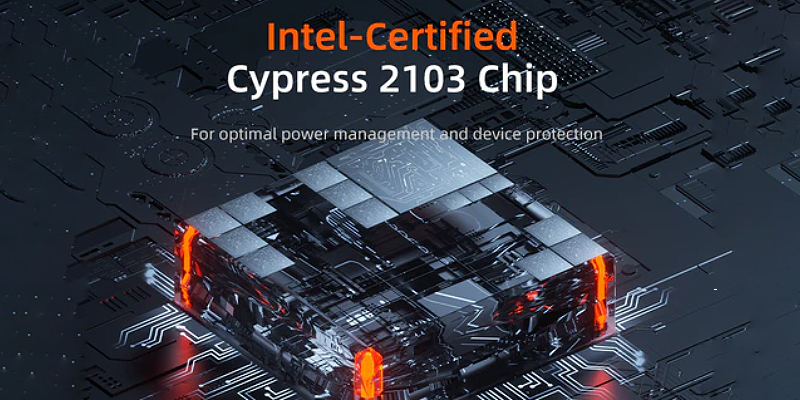 שבב Cypress 2103 מובנה עם אישור USB-IF ושבב E-Marker לטעינה אמינה ובטוחה.