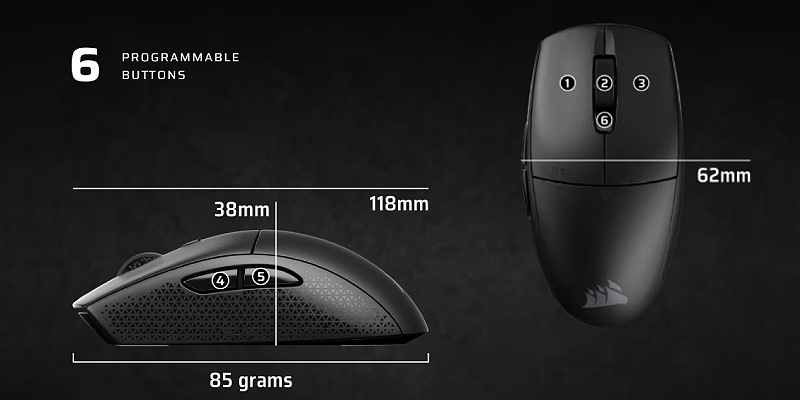 עכבר הגיימינג האלחוטי CORSAIR M55 WIRELESS כולל עיצוב סימטרי וקומפקטי, שמתאים לכל גודל יד וכל סגנון אחיזה.