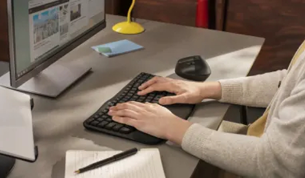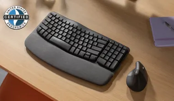 עבוד בנוחות לאורך כל היום עם מקלדת ארגונומית קלה לשימוש הכוללת עיצוב גלים ומשענת כף יד מרופדת.