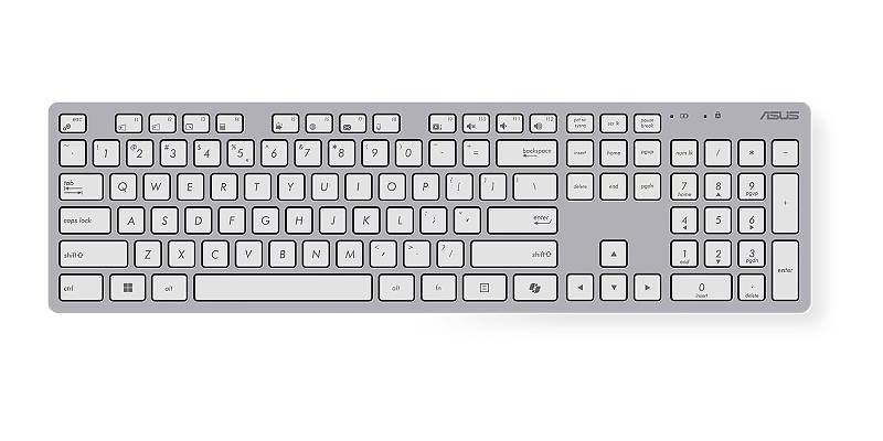 סט מקלדת ועכבר אלחוטיים W5000 מבית Asus בצבע לבן, דקים ועמידים לשימוש יומיומי עם גימור מסוגנן דמוי מתכת. 90XB0430-BKM450