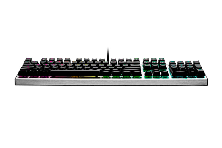 The full-sized CK351 gaming keyboard provides responsive controls in reliable hardware that is rated to last longer than your most intense all-nighters. IP58-rated dustproof and waterproof with state-of-the-art optical switches rated for over 100 million keypresses - and a debounce time that’s virtually instantaneous. Add to that fully custom RGB lighting, media controls, and Cooler Master’s signature On-the-Fly Control system, and you have a steady, rugged workhorse that gets the job done.