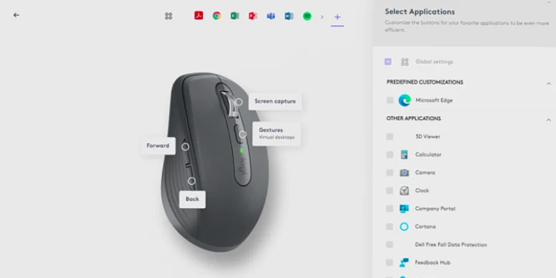 התאם אישית כפתורים, קבע מהירות מעקב, והשתמש בפרופילים ייעודיים לאפליקציות באמצעות תוכנת Logi Options+.