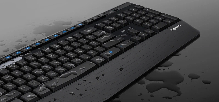 מקלדת עם עיצוב עמיד בפני נוזלים, מקשים עמידים לאורך זמן ורגלי הטיה מתכווננות.