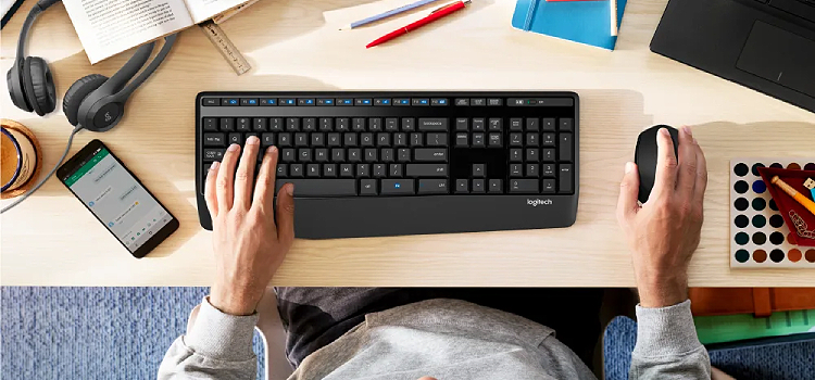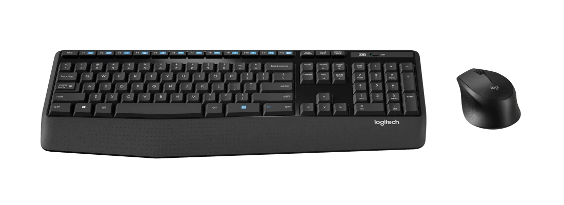 ה-Logitech Wireless Combo MK345 משלב מקלדת נוחה בגודל מלא עם עכבר ימני.