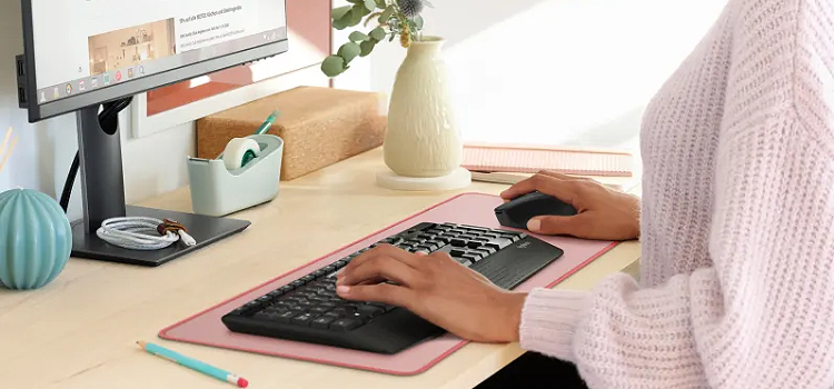 עם משענת יד נדיבה, גובה מקלדת מתכוונן ומקשי מדיה נוחים לגישה כמו השתקה, עוצמת קול והפעלה.