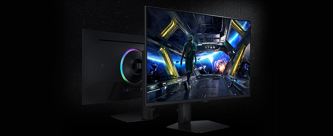 מסך מחשב לגיימינג Odyssey G7 מבית Samsung, בגודל 27 אינץ', עם פאנל IPS ברזולוציית 4K UHD, קצב ריענון של 144Hz, זמן תגובה של 1ms, תמיכה ב-VESA DisplayHDR 400, ב-G-Sync וב-AMD FreeSync Premium לחווית משחק חלקה במיוחד. S27DG702EU