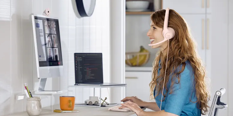 עם חיבור USB פשוט Plug-and-Play מסוג USB-C ומיקרופון מבטל רעשים באוזניית Logitech H390.