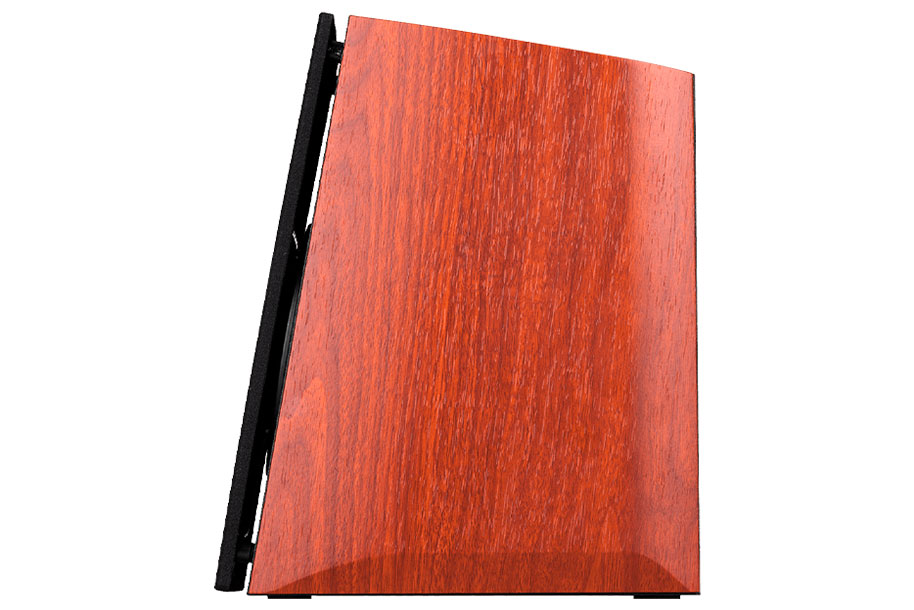 The MDF enclosure is designed not only for catching friends' eyes, but also for reducing distortion and minimizing acoustic resonance. Each speaker base is angled at a 10-degree incline for dynamic precision and delivery. With this design, the woofers direct sound right to your ears.