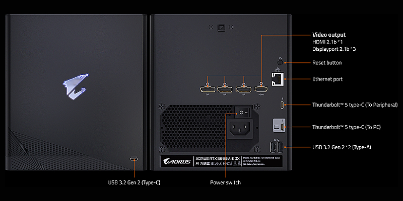 Thunderbolt™ 5 - ה-AORUS RTX 5090 AI BOX מגיע עם ממשק Thunderbolt™ 5 המתקדם,