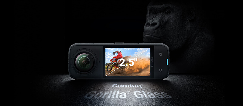 כן, זה מסך מגע בהיר במיוחד בגודל 2.5 אינץ' עם זכוכית חזקה של Corning® Gorilla®,