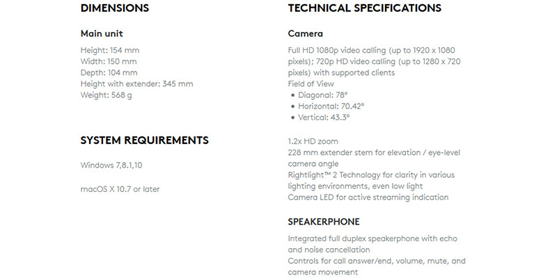 ALL-IN-ONE DESIGN Just plug and play. BCC950 delivers wideband audio from a full duplex speakerphone and HD video from a motorized camera. In other words, it’s everything you need to conduct a small video conference with up to 4 people in one room. |