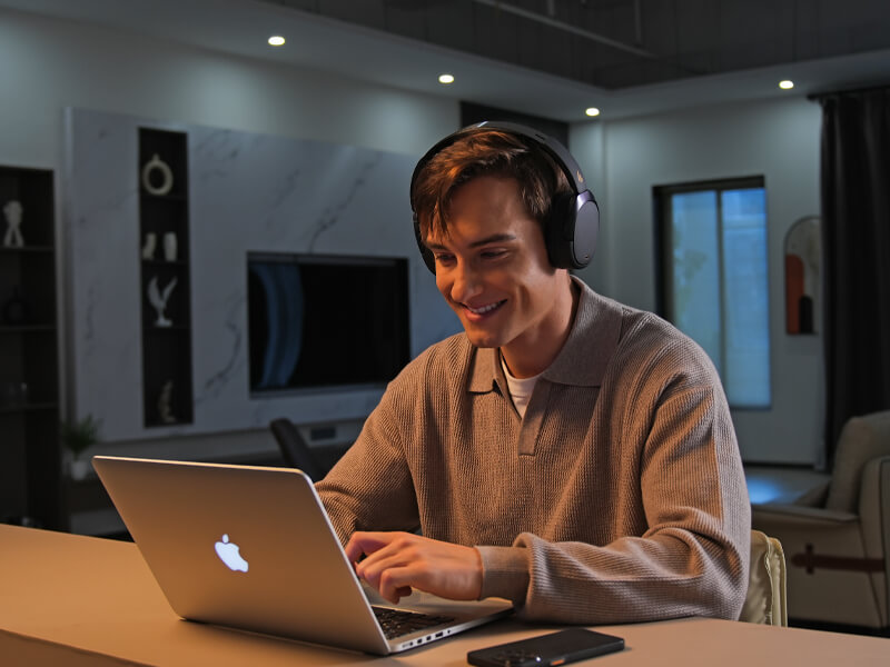 אוזניות WH950NB מצוידות באלגוריתמים אינטליגנטיים ופעילים לביטול רעשים המסננים את רעשי הסביבה.