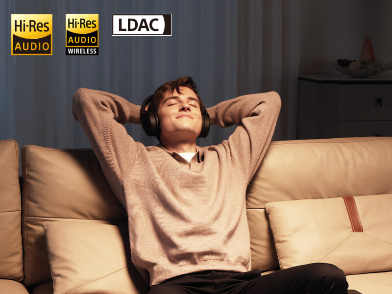 אוזניות ה-WH950NB תומכות הן ב-Hi-Res Audio והן ב-Hi-Res Audio אלחוטיות עם אישור LDAC.