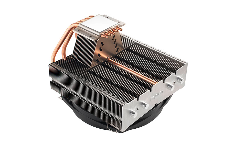 The small diagonal fins on the back of the cooler direct the airflow to guarantee efficient cooling for the CPU as well as components around the Intel® or AMD™ socket.